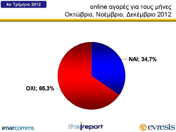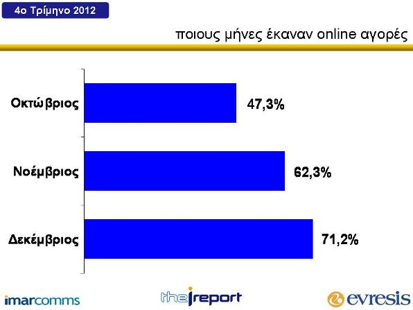 Γενικότερα οι online αγορές αυξήθηκαν κατά 2.2% από το προηγούμενο τρίμηνο του 2012 στο 34.7% παρά την συνεχιζόμενη οικονομική ύφεση ξεπερνώντας το ένα τρίτο των επισκεπτών του διαδικτύου ηλικίας 13 ετών και άνω.